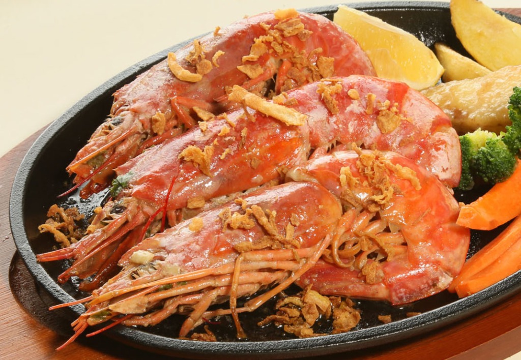 エビをニンニクバターで炒めた物