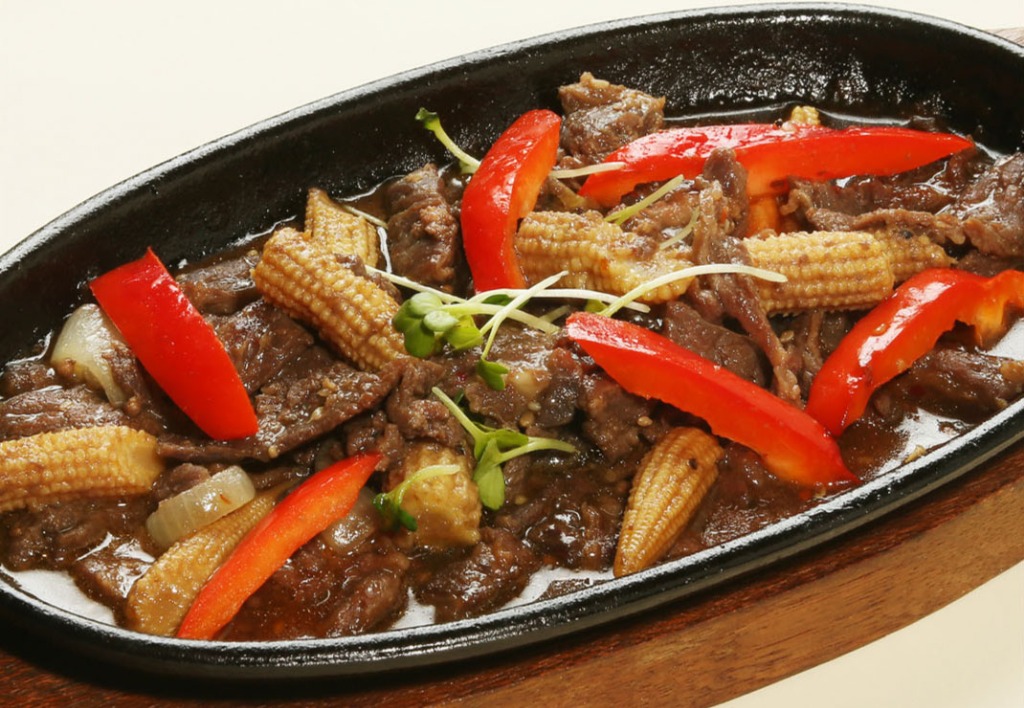 牛肉をベビーコーンと野菜でフィリピン風に炒めた物