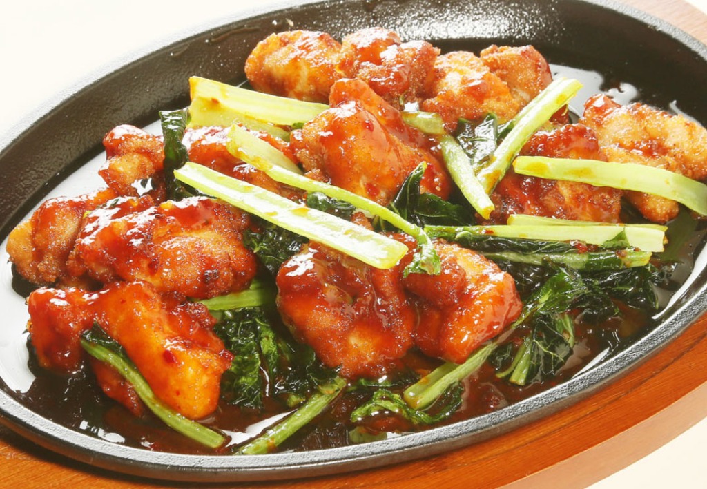 チキンとチンゲンサイをフィリピンのソースで炒めた物